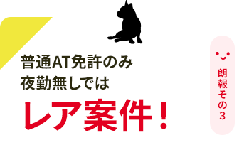 | 応募資格・スキル | 学歴・経験不問 普通自動車第一種運転免許(AT限定可) |