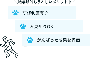 | 採用までの流れ | 電話応募→面接→お電話にて結果通知(1週間以内)→採用 |
